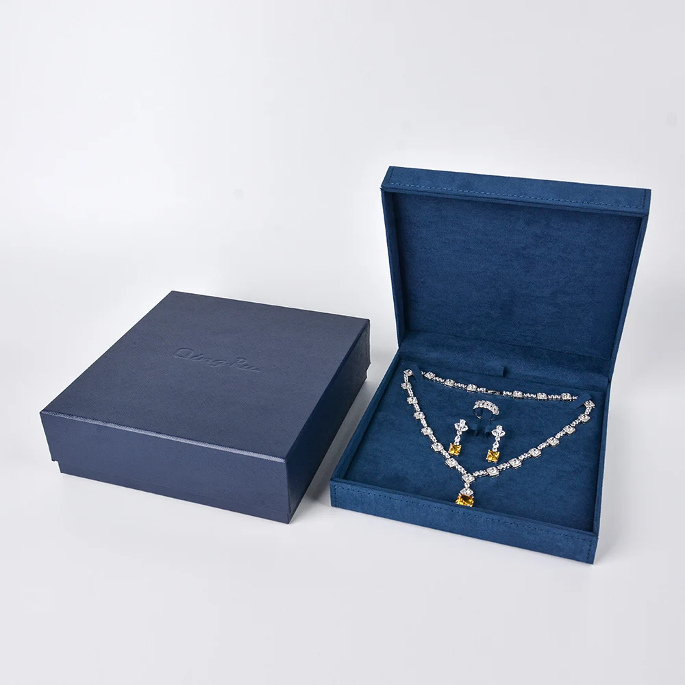 Wholesale Luxury Plastic+Velvet Rectangle Square Jewelry Packaging Box Set Bracelet Earring Necklace Ring Custom Embossed Design