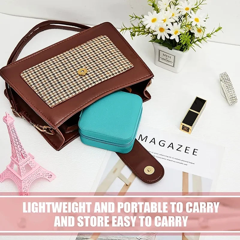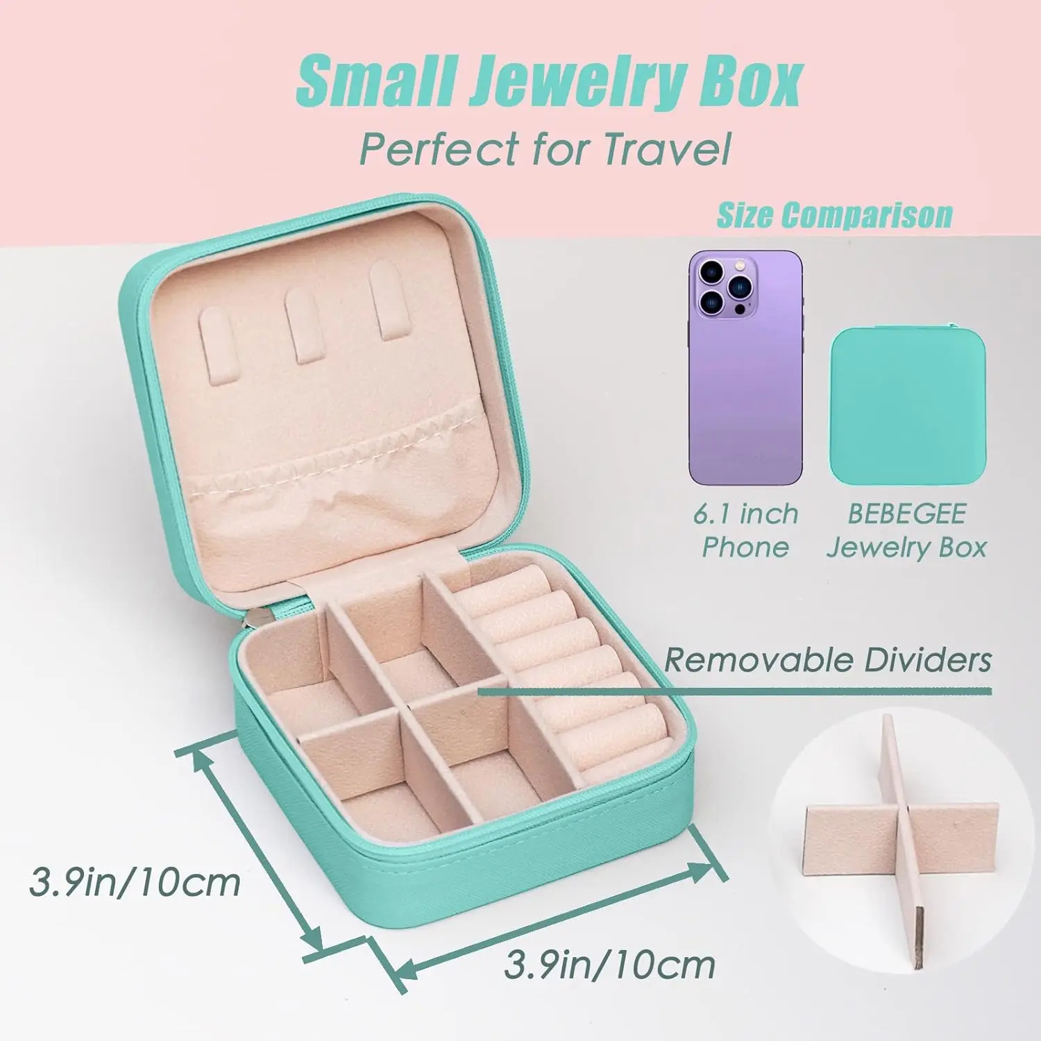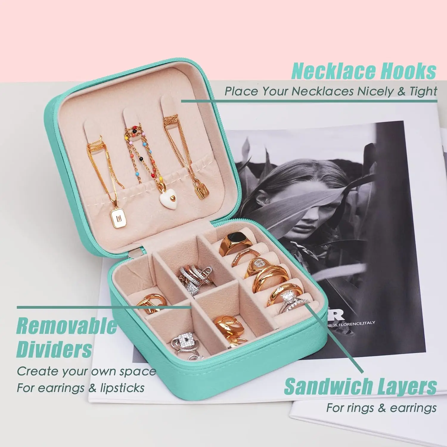 Wholesale Travel Portable Small Jewelry Box Rings Earrings Organizer Custom Pu Leather Zipper Square Mini Jewellery Storage Case