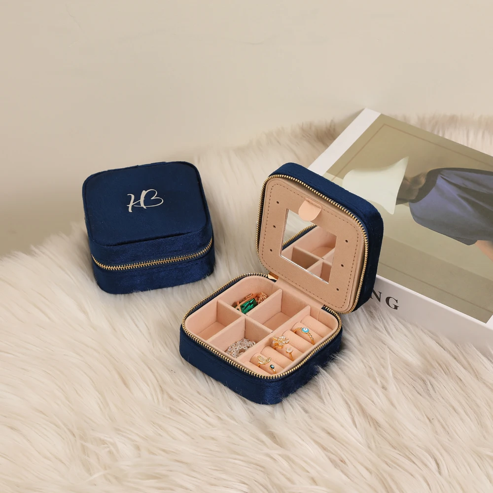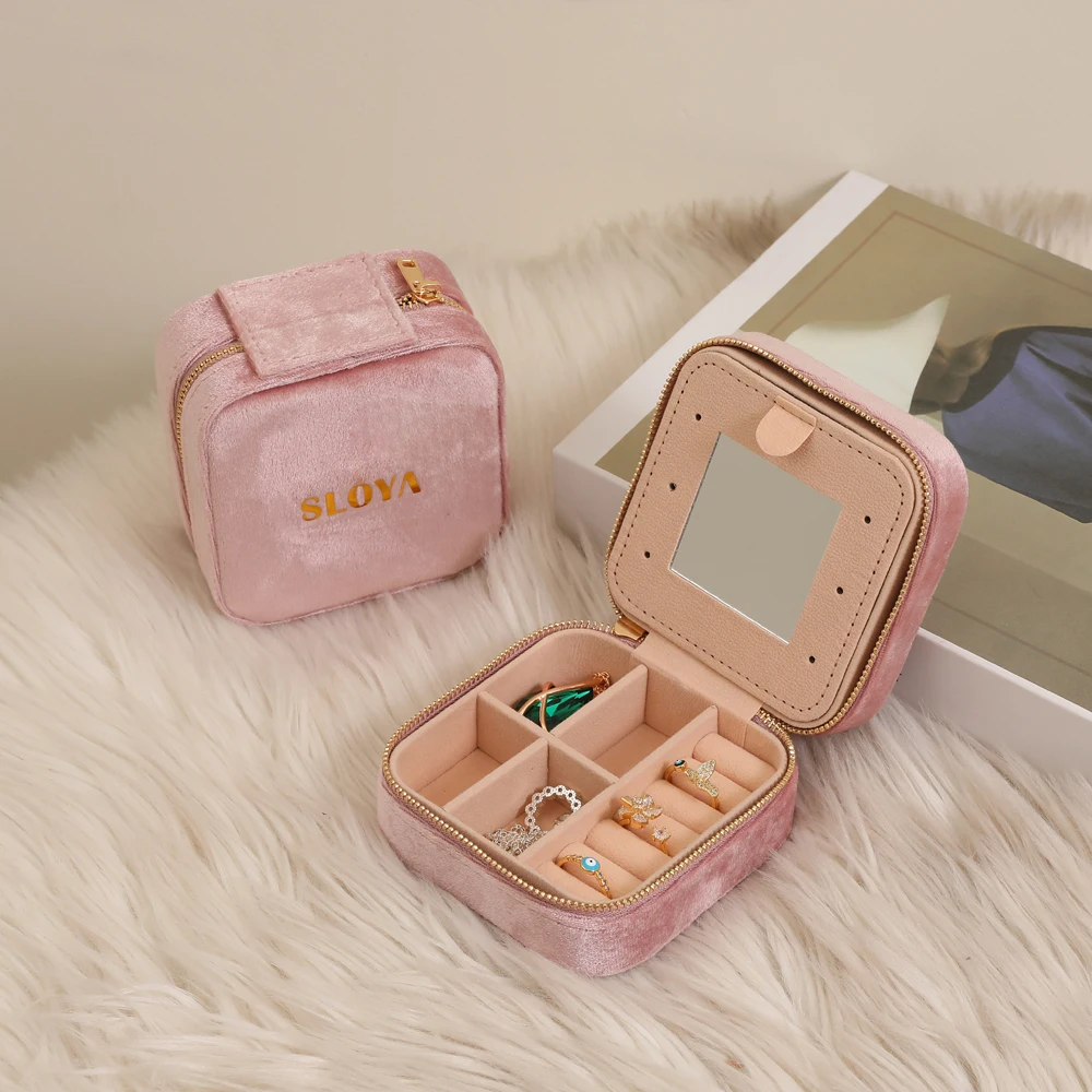 Wholesale Velvet Travel Jewelry Box Organizer Custom Leather Earring Ring Necklace Jewellery Case With Mirror