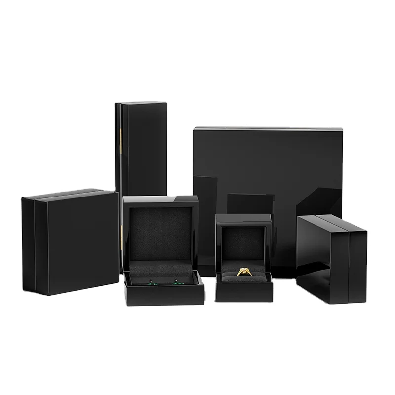 Wooden Packaging Black Necklace Wholesale Boxes Ring Earring Pendant Bangle Bracelet Set Jewelry Box with Custom Logo